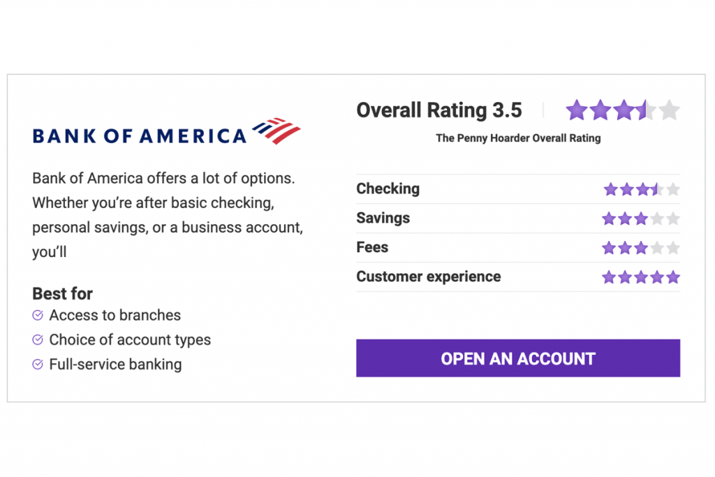 This Bank of America review looks at the bank’s checking and savings features for individuals and small businesses, as well as its overall convenience and mobile banking features. Note that Bank of America’s credit cards and lending products are not included in this review.