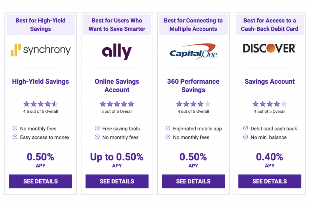 Bonuses: Because banks regularly add, remove or replace their bonuses, we did not include them in our criteria. If you’re stuck between two or three comparable savings accounts, see which one offers the best sign-on bonus. We highly recommend checking out our current bank promotions list to help earn bonus cash or incentives when signing up for a new savings account.