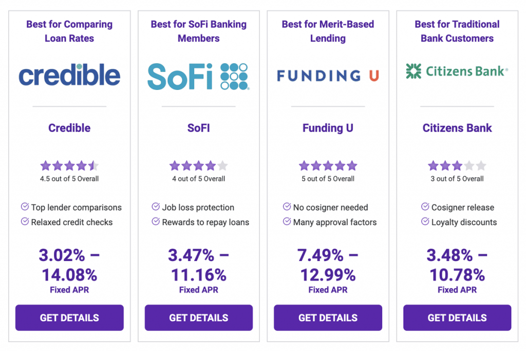 Unlike federal student loans, private student loans offer a variety of options for interest rates, loan amounts and terms that could make picking one daunting. So we’ve pulled together a list of some of the best student loans available to make it easier for you to compare and vet your options.